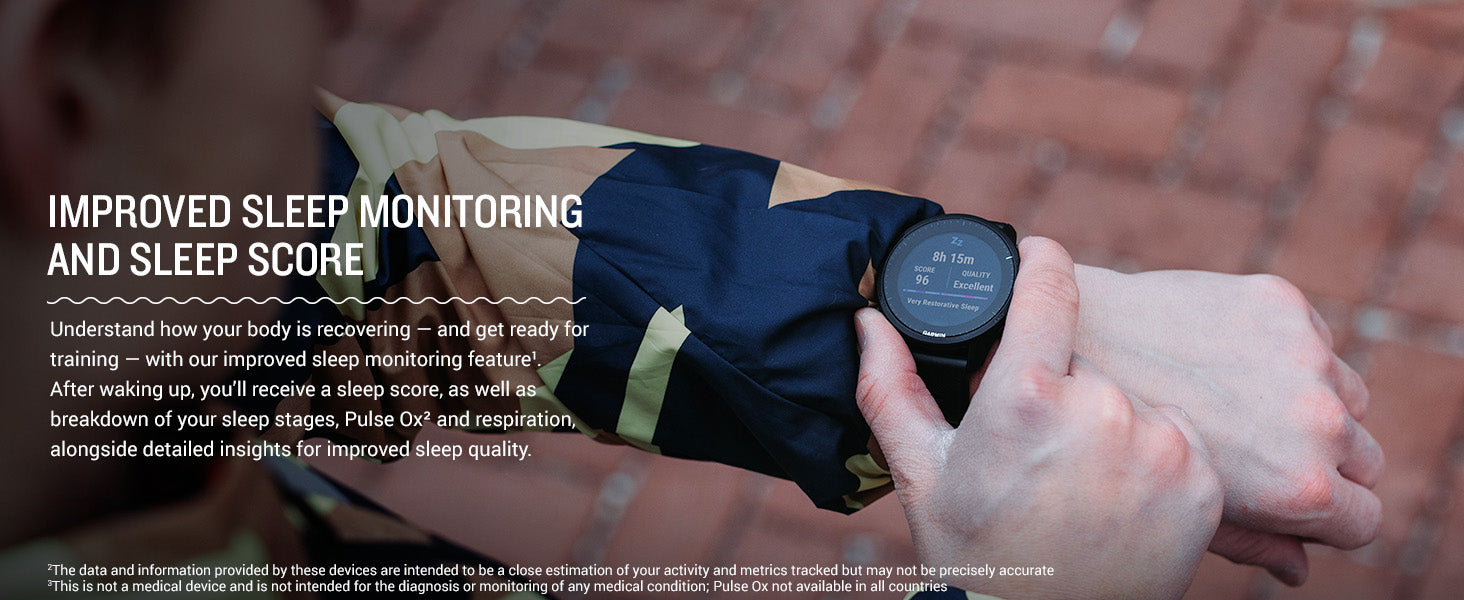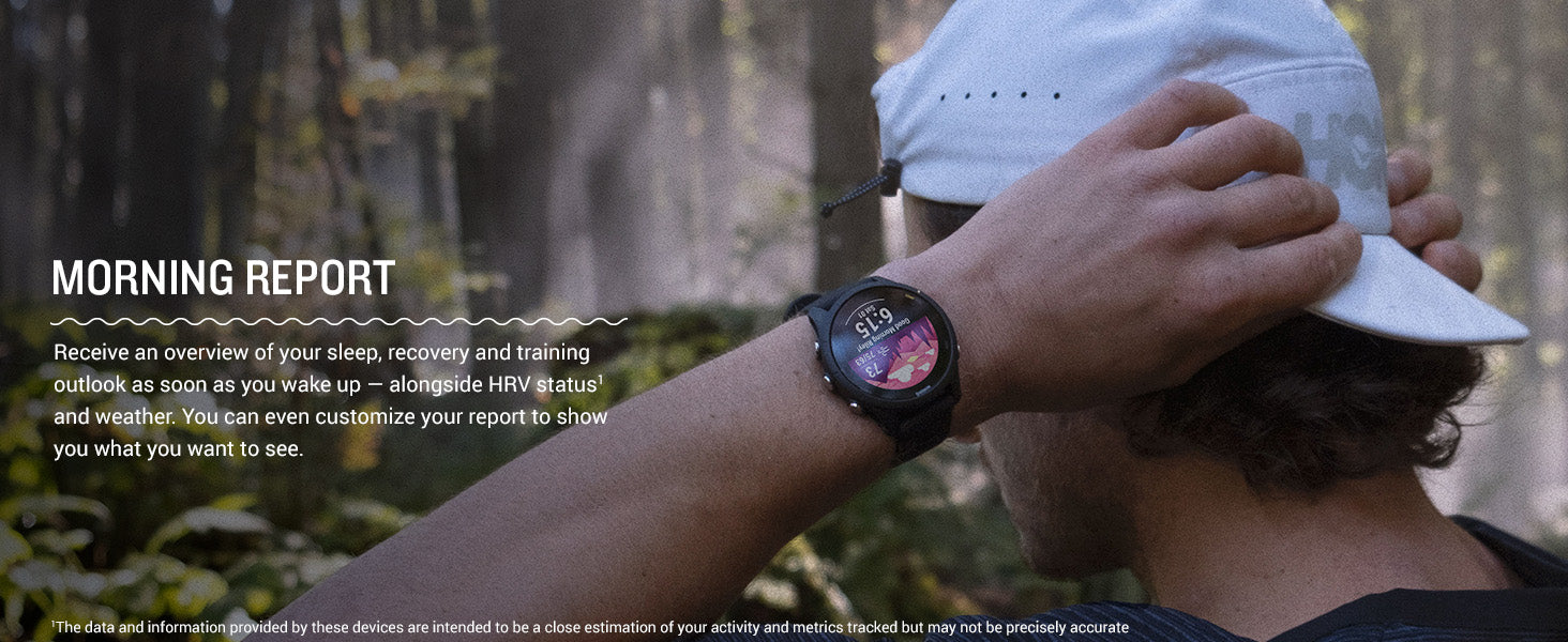 Health and Wellness Monitoring: Wrist-based heart rate, daily resting heart rate, abnormal heart rate alerts, respiration rate, fitness age, Body Battery energy monitor, all-day stress tracking, relaxation reminders, sleep tracking (advanced), sleep coach, nap detection, hydration tracking, women's health tracking, Health Snapshot.