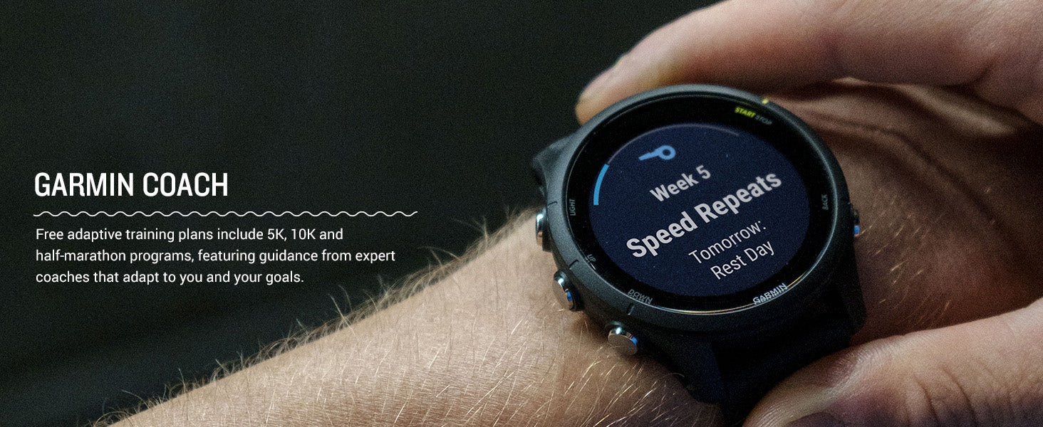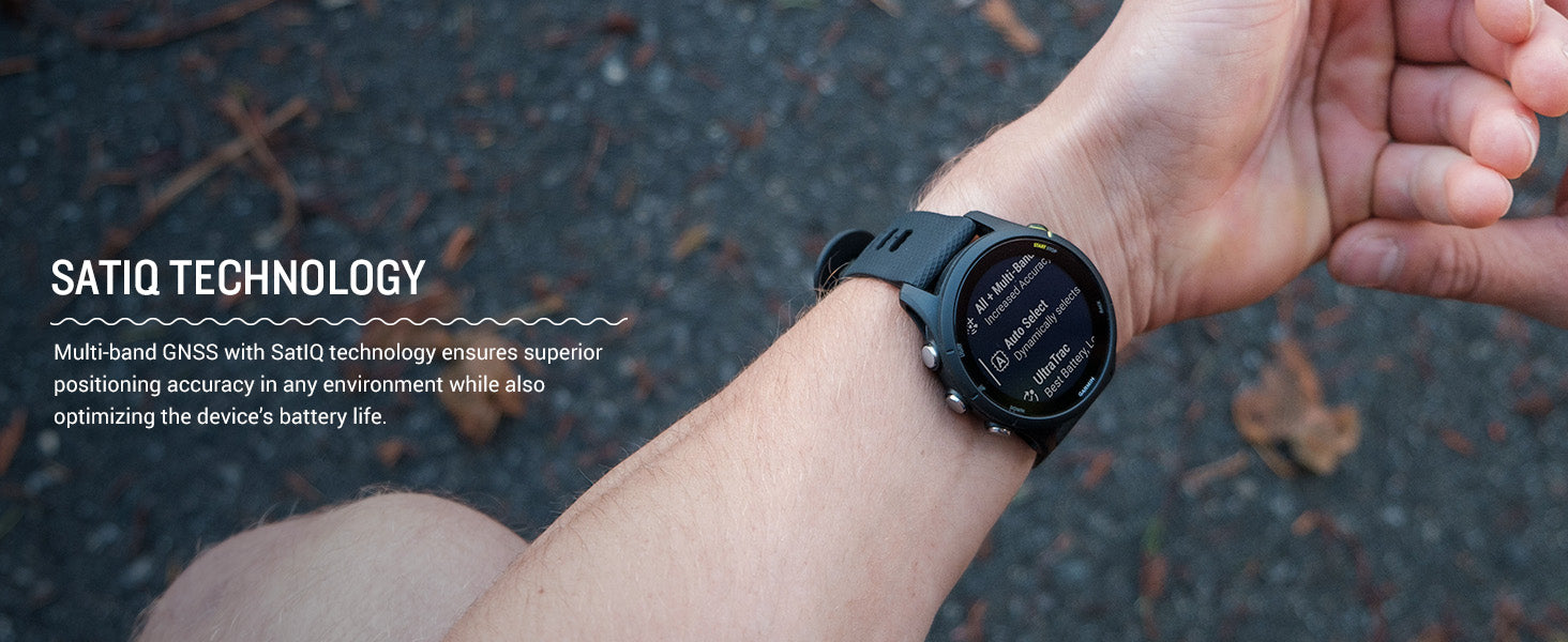 Comprehensive Running Features: GPS-based distance, pace, and time tracking, running dynamics (vertical oscillation, ground contact time, stride length), cadence, running power, performance condition, lactate threshold, PacePro pacing strategies, run workouts, trail run auto climb, race predictor.